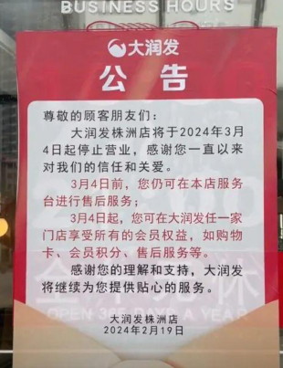 近日,大润发在江苏镇江、四川德阳、湖南株洲相继传出关店消息!2月17日,大润发镇江学府路店发布公告称,该店将自2024年2月29日起停止营业,如消费者有购物卡使用、商品售后等服务的需求,将由大润发京口店继续提供服务。可以说,很多知名商场开始面临市场运营期间的困局,各行各业市场紧缩自然也让老百姓更加不敢消费,而连基本的生活方面也开始大幅减少采购,对大型商场来说犹如当头一棒。...