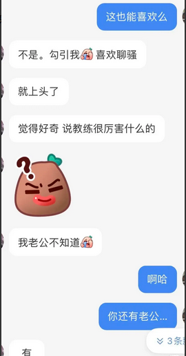 出轨对于一个家庭来说意味婚烟背叛,更是破坏婚烟情感的基石。虽然说道德上伦理问题大家都明白,但不少人还是经不住诱惑选择铤而走险。 出轨不仅仅发生在男性身上,女性其实更容易享受这种偷情带来的刺激感。 近日,上海一位已婚女兰女士,因为在上海健身房认识了男私教帅哥,被对方强壮的身材和帅气的五官所吸引,加上私教懂得甜言蜜语,一时间让兰女士内心的爱火被点燃,两人如干柴烈火般一触即发,为此兰女士偷尝了禁果,事后却感觉对不起丈夫,情感道德方面产生内疚,找闺蜜求助。女子和闺蜜的聊天记录&nbs...